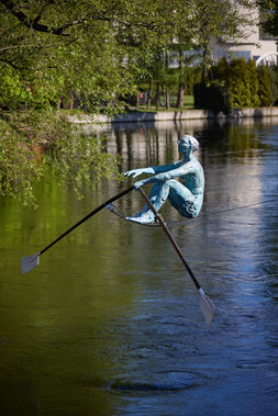i słoneczne bliki rzucane z wodnych fal na detale rzeźby. Trudności konstruktorskie nie przeszkodziły artyście oddać postać wioślarza z finezją i lekkością rzeźbiarskiego kunsztu. To opowieść o dążeniu do harmonii i utrzymywaniu chwiejnej równowagi - życiowej i artystycznej. Bo to taka cicha, balansująca propozycja między ruchem a spokojem, między historią miasta a nową ścieżką sztuki, idealna odskocznia od szarego dnia w centrum miasta.