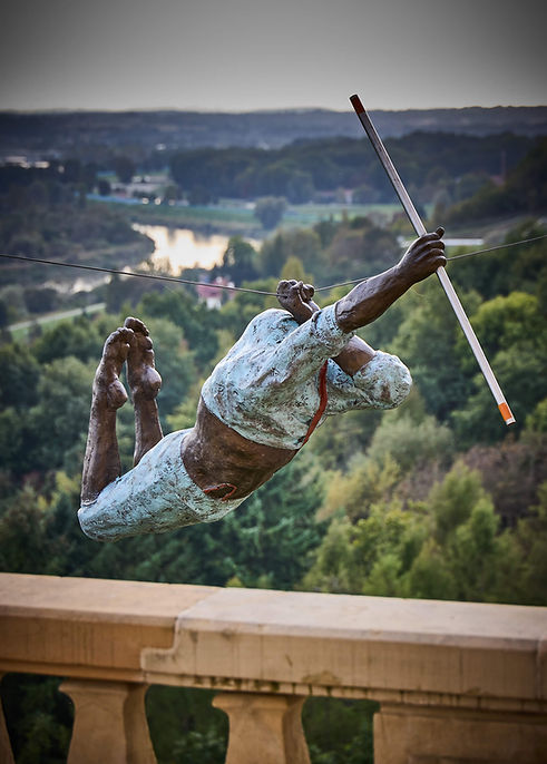 The trail is a living, constantly expanding object of fresh artistic thought, an important component of Polish culture and national heritage. A simultaneous monument to a balancer who grew up in the context of Polish social and political transformations, a man detached from the earth and carried with his dreams of freedom of action and freedom of thought to the heavenly firmament. Works of representational sculpture, rooted in centuries-old artistic achievements, but creating an avant-garde branch of its presentation and saturated with natural, wobbling energy and expression.